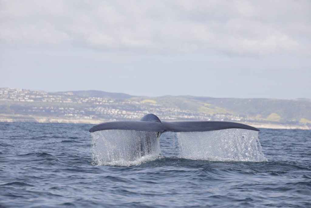 (9:00) 2 gray whales (cow/calf), 1 blue whale, 200 common dolphin, 15 bottlenose dolphin